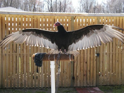 Turkey Vulture Adult Photo by Eileen Wicker, Kentucky Identifying featuresCompared to black vultureDevelopmentFledglingIn flightHead close-ups Feet close-ups Wing close-upsTail close-ups (Scroll down for more photos) Photo by Jean Chamberlain, North Carolina Juvenile Photo by Sallie Reynolds, California, August 18, 2005 Fledgling Photo by Jean Chamberlain, North Carolina, July 22, 2009 Nestling Approximately 2 weeks old Photo by Eileen Wicker, Kentucky Photo courtesy Carolina Raptor Center, North Carolina Photo by Gary Siftar , Oklahoma Photo by Marge Gibson, Wisconsin Estimated 3.5 weeks old Photo by Eileen Wicker, Kentucky Photo by Jean Chamberlain, North Carolina, July 13, 2004 Photo by Marge Gibson, Wisconsin Photo by Jane Schnelker